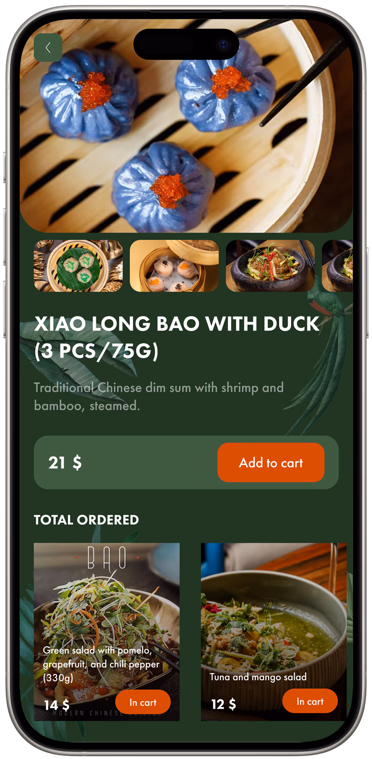 A mobile app that brings the flavors of modern Asian cuisine closer than ever. Users can easily explore the full menu, discover detailed dish information, track delivery in real time, and get personalized recommendations from an intelligent AI Chef — all in one sleek, premium experience.