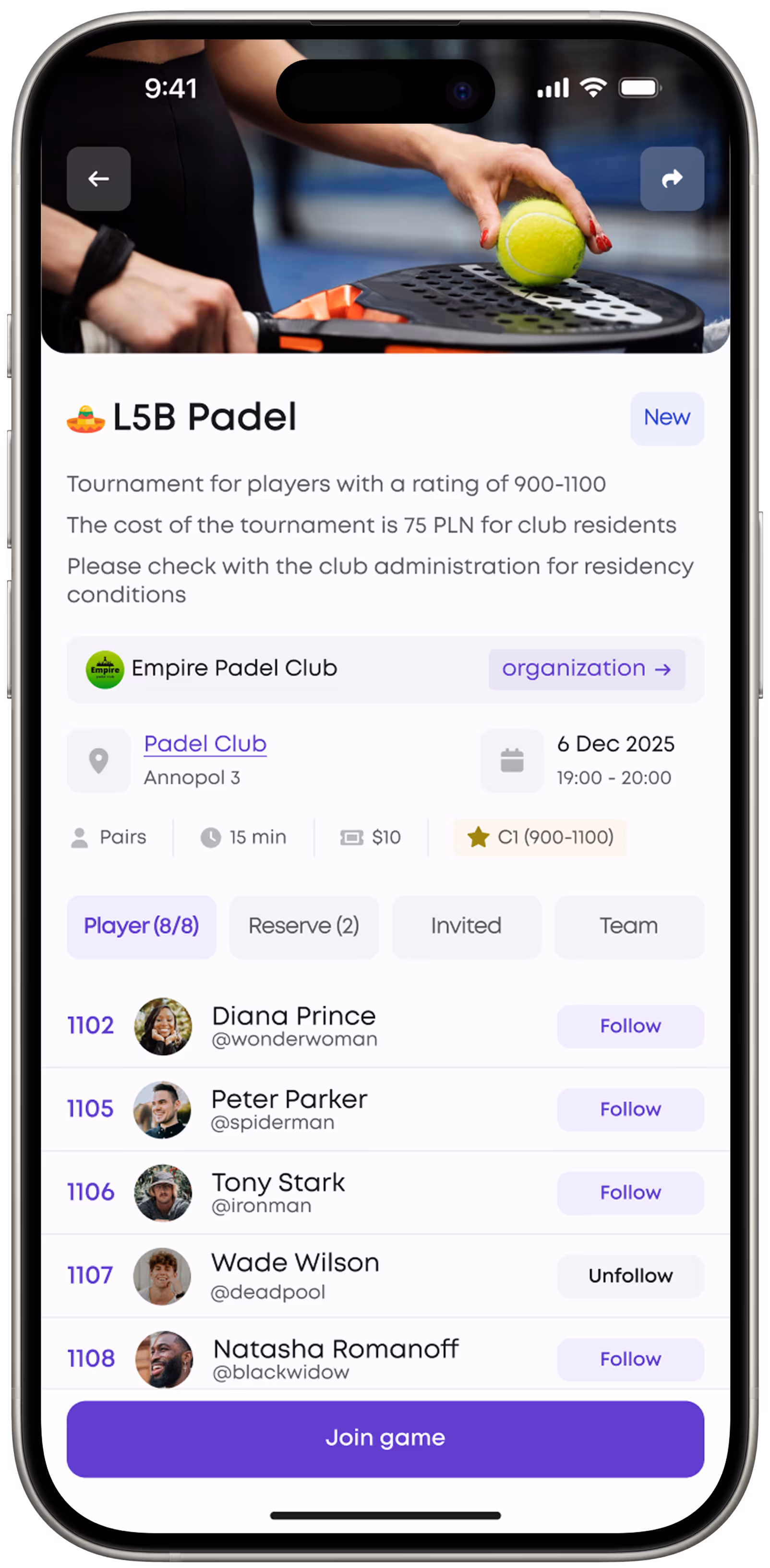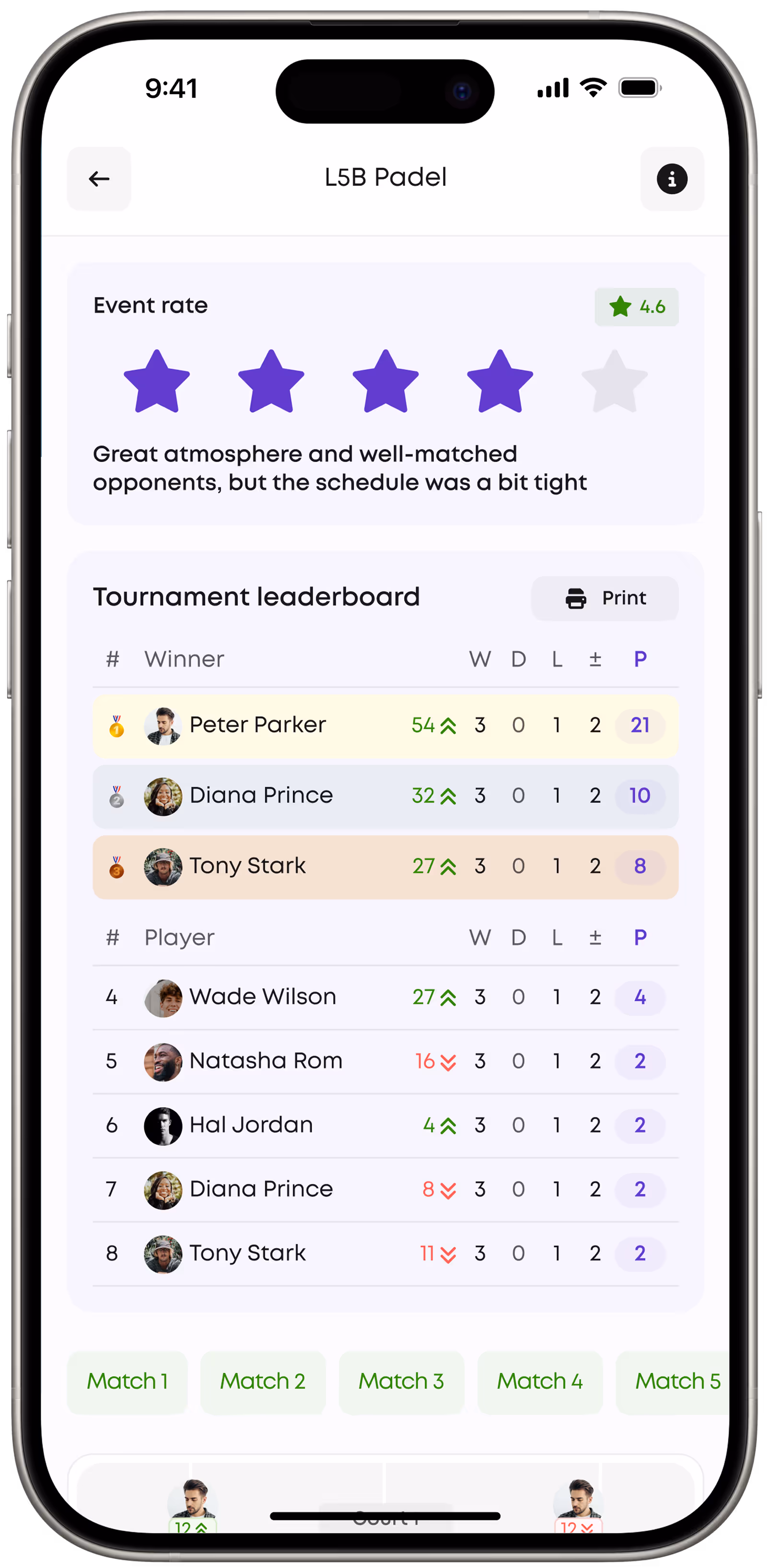 Create a seamless mobile experience for organizing and managing padel tournaments.
